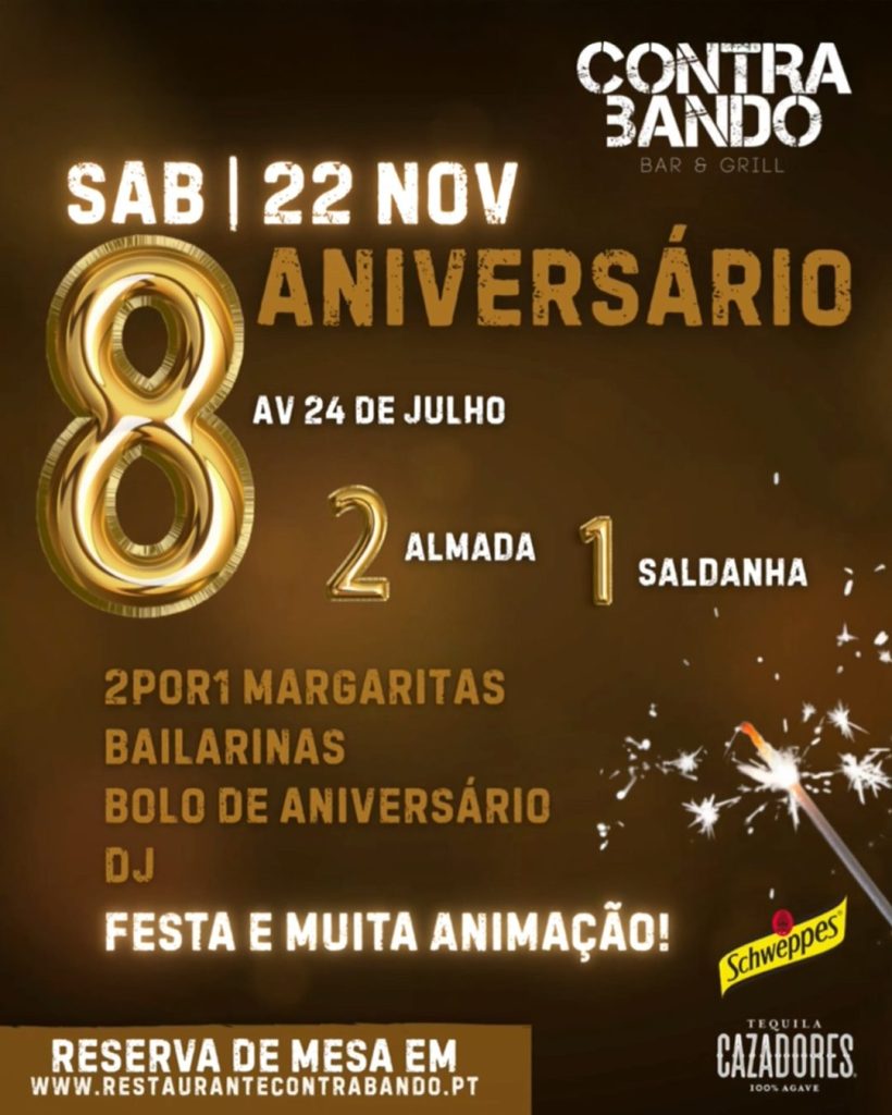Com espaços no Saldanha, Almada, Marina de Tróia e na zona de Santos, o Contrabando é o lugar perfeito para qualquer momento do dia. Pode petiscar uns nachos enquanto assiste a um jogo com os amigos, jantar descontraidamente em família, ou aproveitar os menus de grupo com bebida à discrição — ideais para celebrar com quem gosta.
